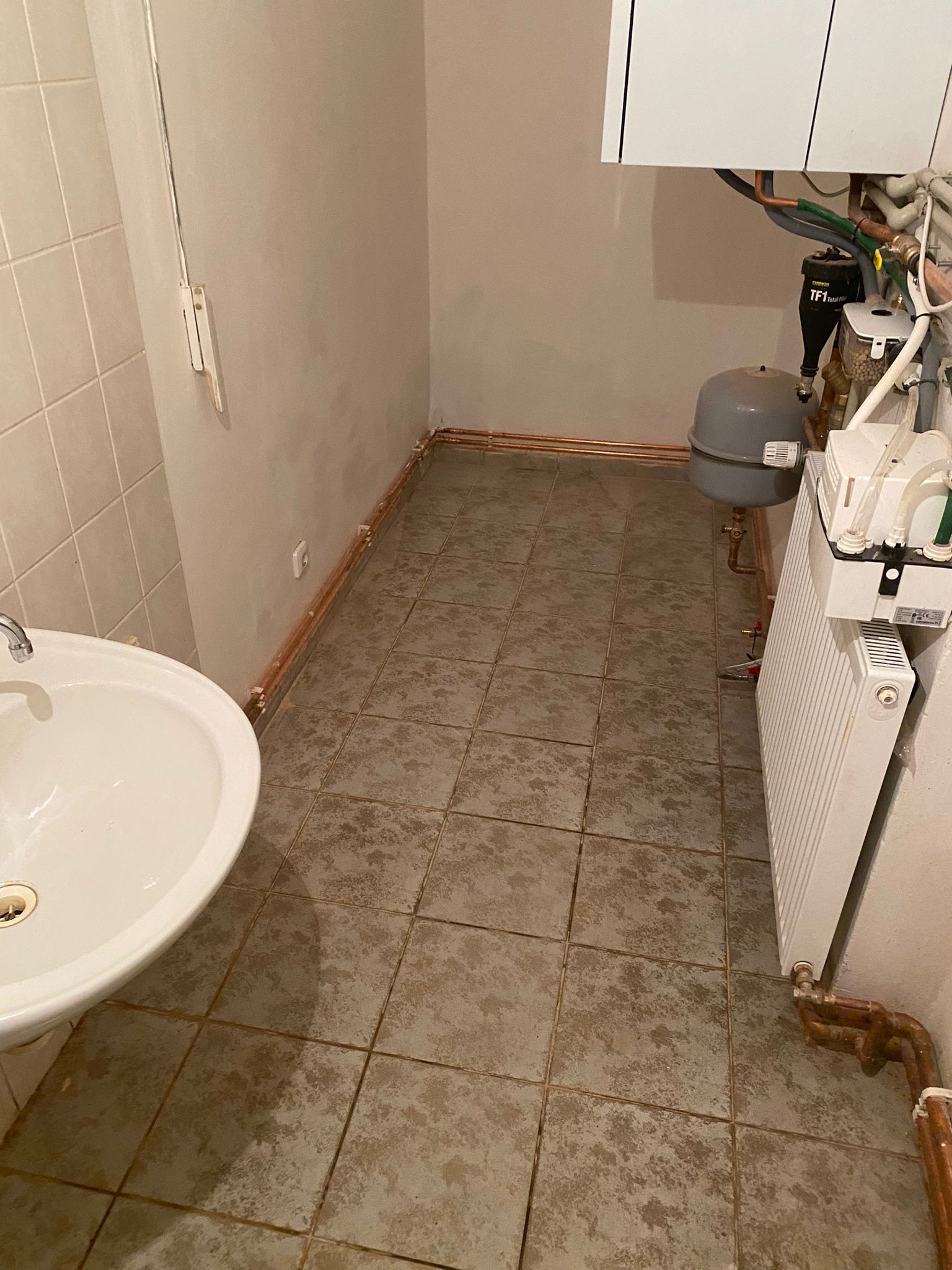 Po podpisu objednávky jsme si předali klíče, připravili realizační projekt a dali se do práce. V prostorách jsme pověsili všechny radiátory, natáhli k nim potrubí a vše připojili. Poté jsme na zeď pověsili kotel, napojili topení, vodu a odpad. Na to, abychom zatopili, nám ale chyběly 2 věci – nový komín a fakturační plynoměr.